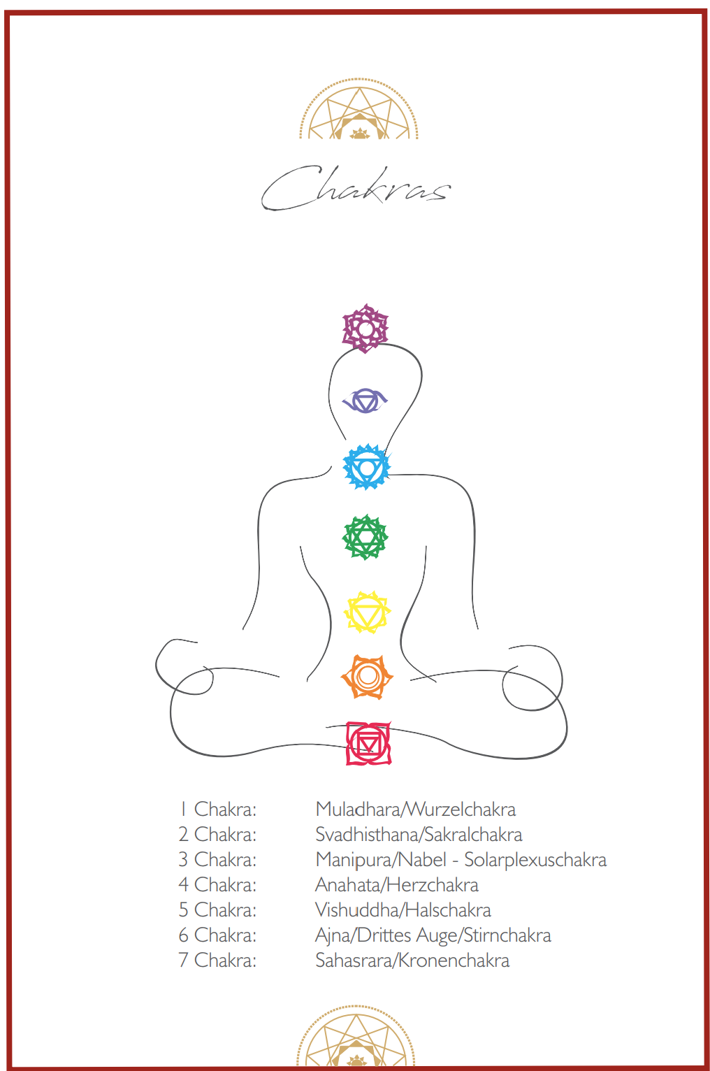 In diesem Jahr möchte ich mich den Chakren, den Energiezentren in unserem Körper widmen. Wenn Du regelmäßig Yoga praktizierst, hast Du sicherlich schon von den Chakren gehört oder einzelne Yogastunden zu den Chakren gemacht.